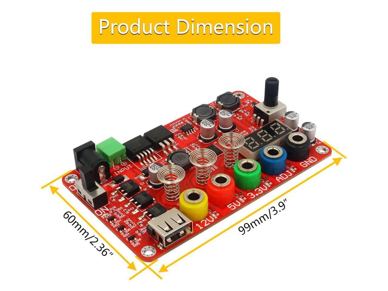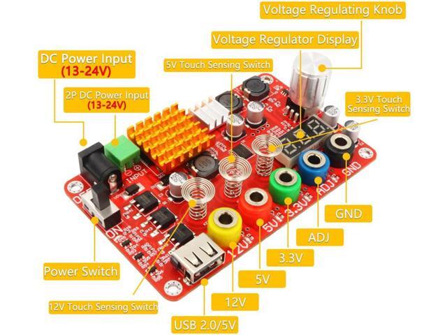 - Parameter --- input voltage range DC 13V-24V; Output voltage range 1.8V-10.8V (ADJ) Maximum output current 3A, stable voltage: 3.3V / 5V / 12V.