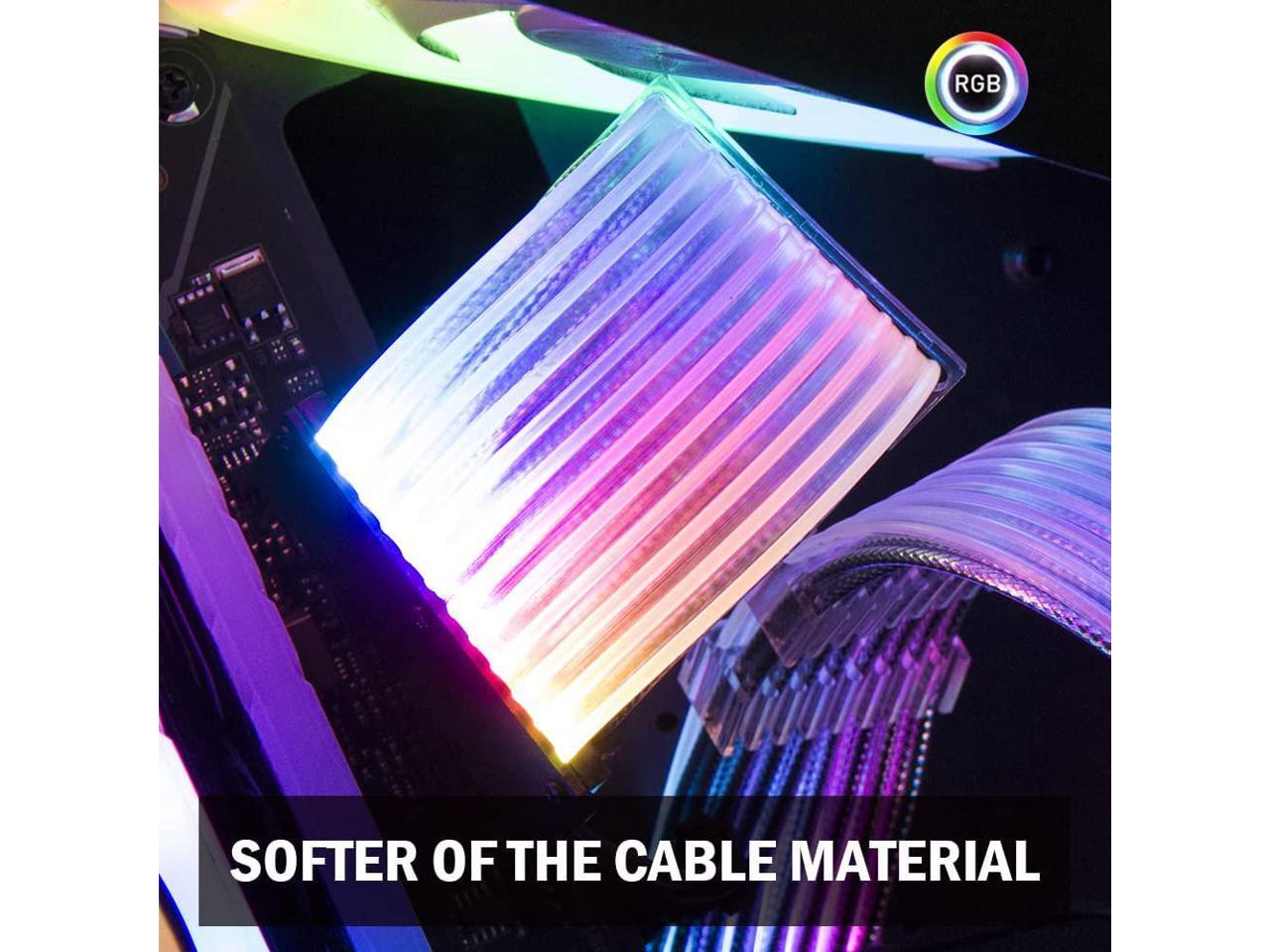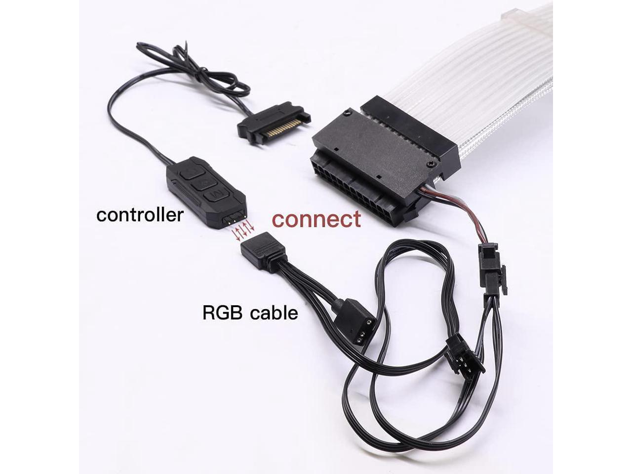 PSU Cable ARGB Extension Sleeved Cable Kit Custom Power Supply Braided with RGB Controller for Computer Gaming Case(24-Pin)