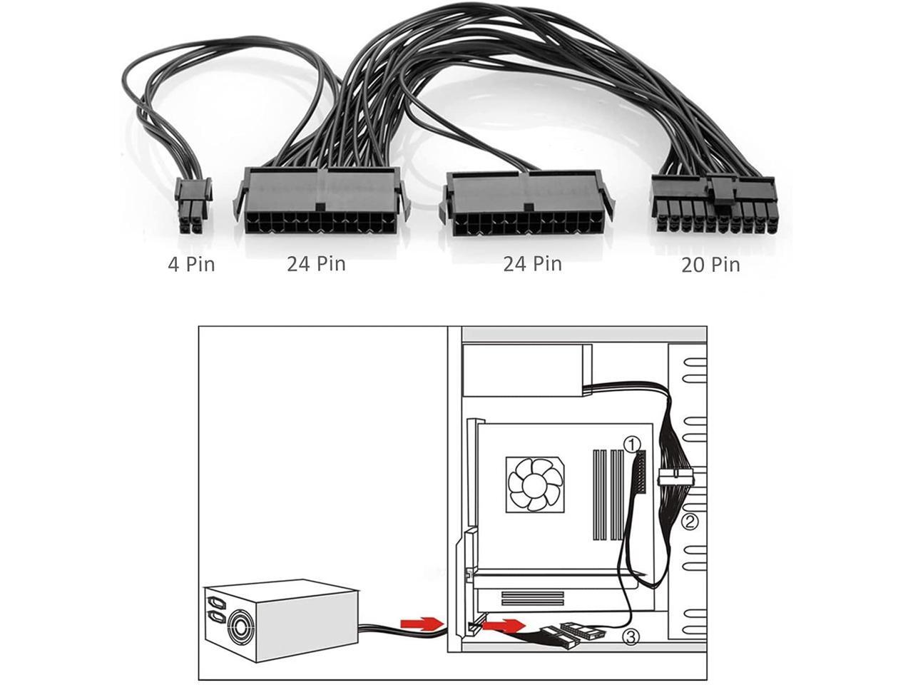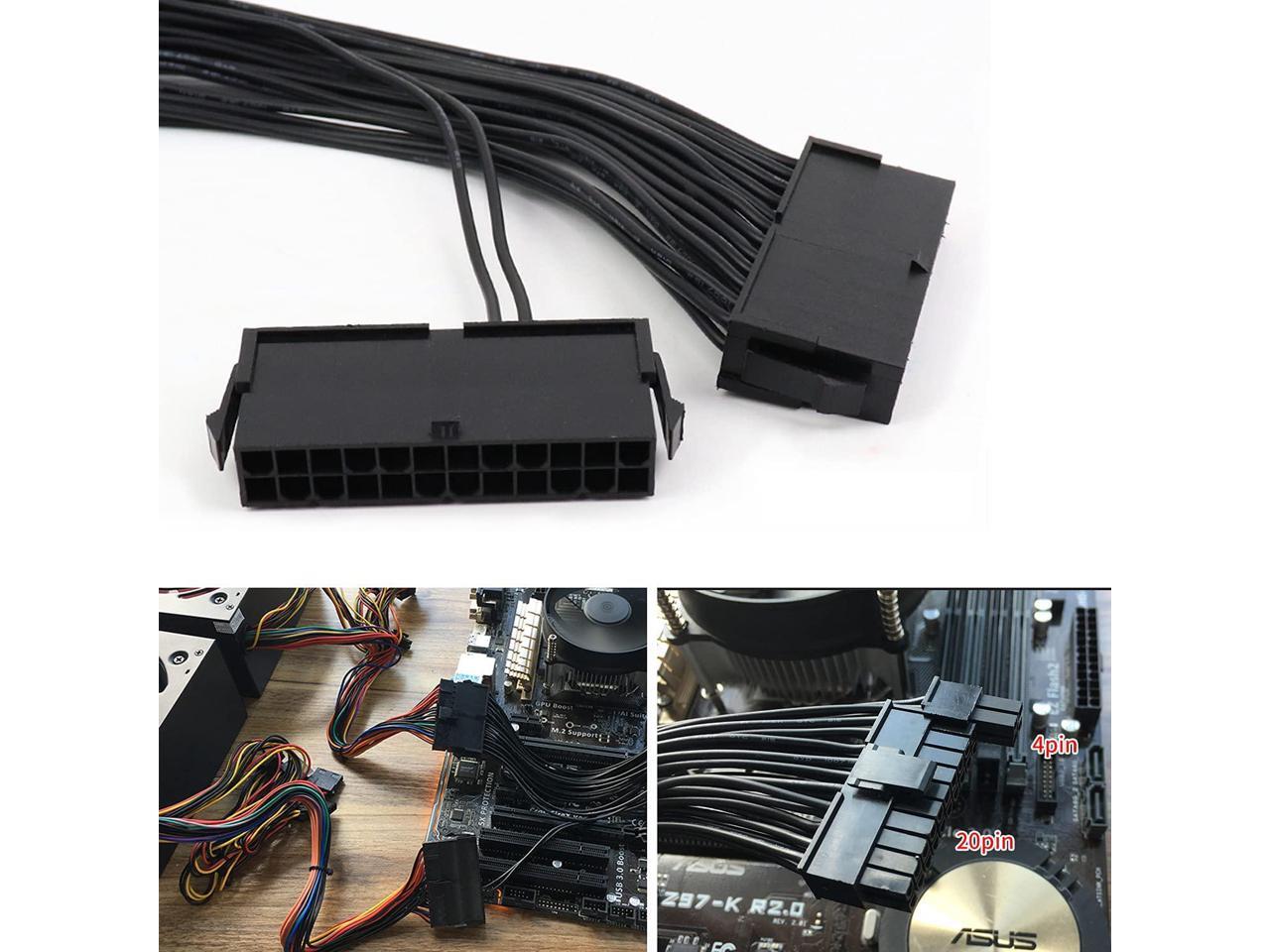 Dual PSU Power Supply 24 Pin Extension Cable for ATX Motherboard,24 Pin 20 + 4 Dual Multiple PSU Power Supply Cable Splitter Adapter Extension Kit