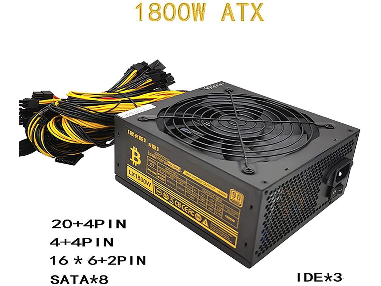 NVORJO Mining Machine Power, Active PFC Power Supply Mining PC Power, Modular Power Supply Mining Machine \u200bSupply Supports 8 Graphics Card,1800w,110V