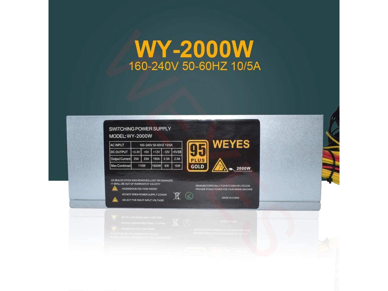Super Heat Dissipation,Double Fan 2000W ATX Professional Miner Power Supply 8 Graphics Cards Stable 12V 150A Longer Service Life