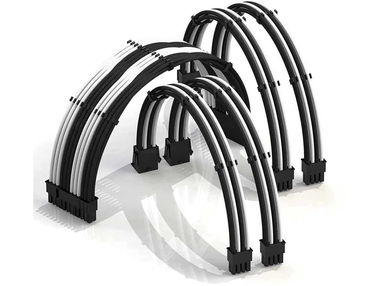 LINKUP - 30cm Super Soft and Flexible PSU Cable Extension Sleeved Custom Mod GPU PC Braided w/Comb Kit1 x 24 P (20+4)2 x 8 P (4+4) CPU2 x 8 P (6+2) GPU Set300mm - WhiteBlack