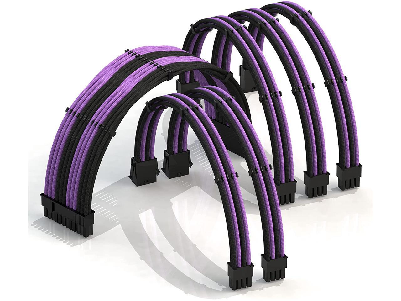 LINKUP - 50cm Super Soft and Flexible PSU Cable Extension Sleeved Custom Mod GPU PC Braided w/Comb Kit - Compatible with RTX30901x24 P (20+4)2x8 P (4+4) CPU3x8 P (6+2) GPU Set500mm - PurpleBlack