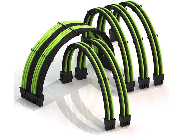 LINKUP - 50cm Super Soft and Flexible PSU Cable Extension Sleeved Custom Mod GPU PC Braided w/Comb Kit - Compatible with RTX30901x24 P (20+4)2x8 P (4+4) CPU3x8 P (6+2) GPU Set500mm - GreenBlack
