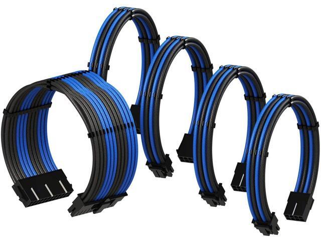 LINKUP - 50cm Super Soft and Flexible PSU Cable Extension Sleeved Custom Mod GPU PC Braided w/Comb Kit1 x 24 P (20+4)2 x 8 P (4+4) CPU2 x 8 P (6+2) GPU Set500mm - Blueblack