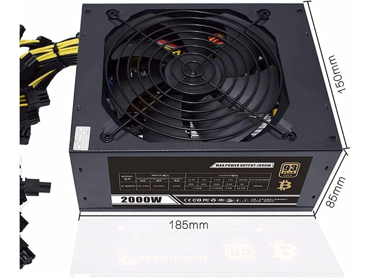 HaoJieHan Mining Power Supply Support 6/8 GPU,2000W BTC Dogecoin Miner PSU,ATX PC Modular Power ETH Rig Ethereum Miner,Mining Rig System Power Suply