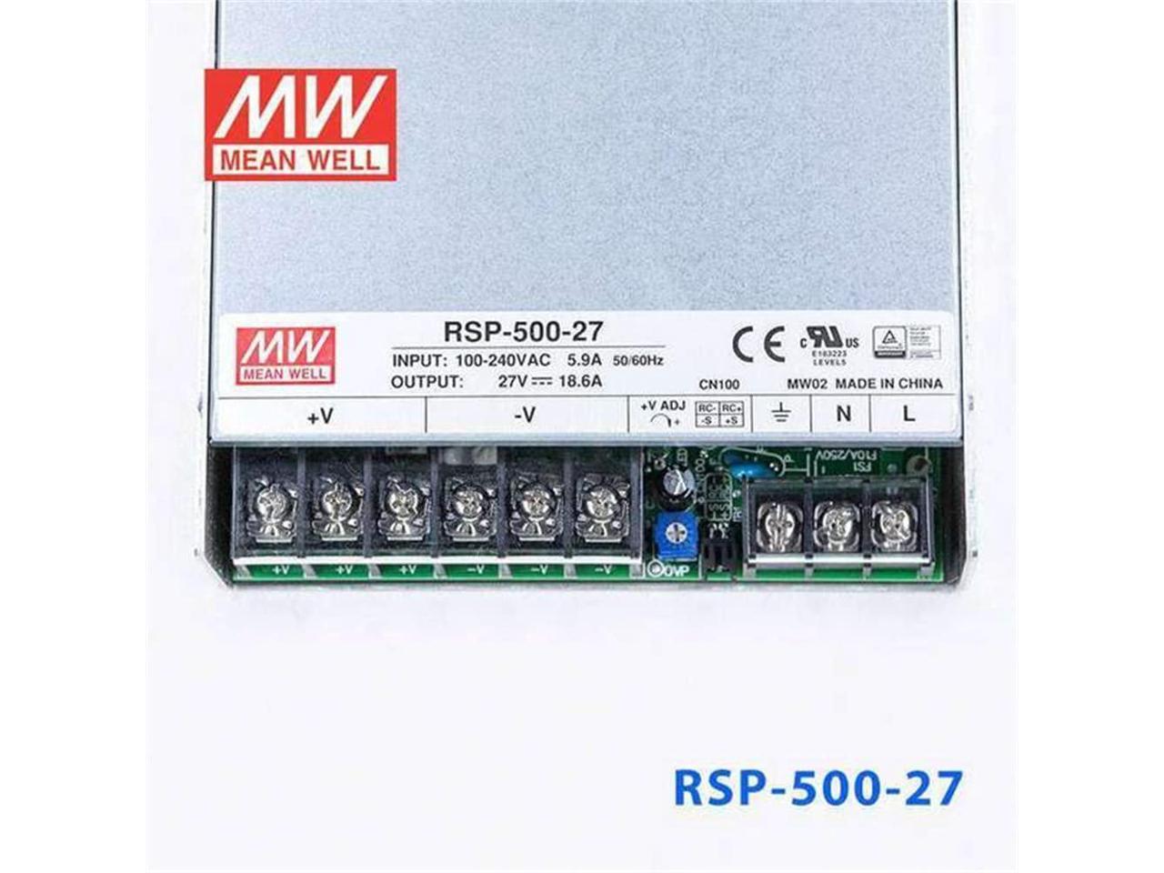MW Mean Well Enclosed Type RSP-500W-12/15/24/27/3.3/4/48/5V PFC RSP Series 500W Single Output with PFC Function Power Supply (RSP-500-27)