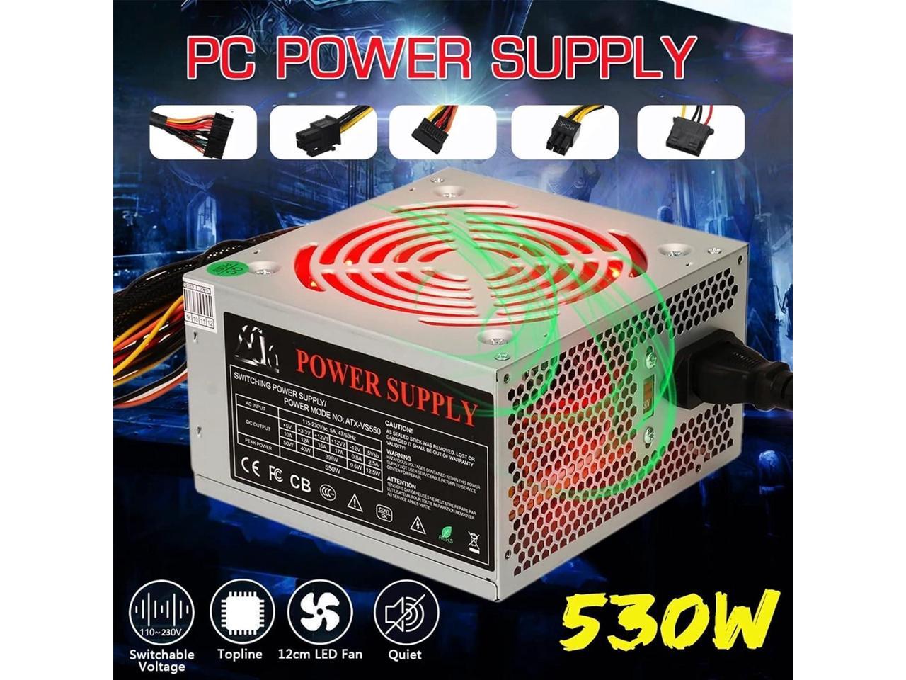 SUTK 530W PC Power Mute Wear-Resisting 12V ATX Computer Case Power Supply
