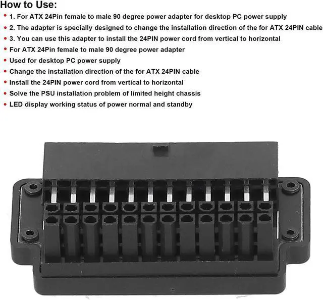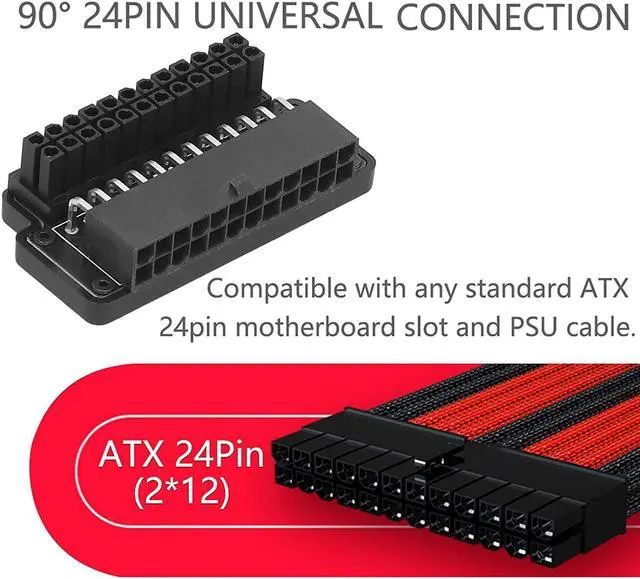 1. For ATX 24Pin female to male 90 degree power adapter for desktop PC power supply