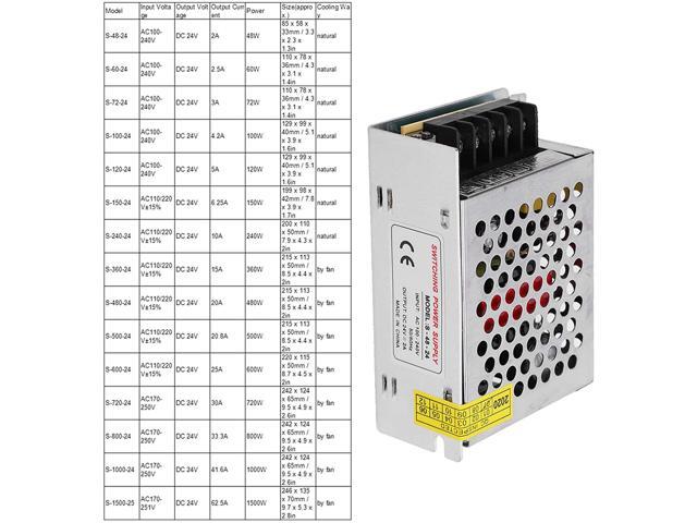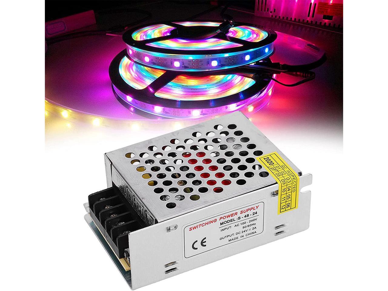 LED Strip Light Driver, Stable Protection Function Aluminum Alloy Switch Power Supply Driver for LED Display CCTV for Radio Computer Engineering(S-48-24 (24V/2A/48W) AC100-240V)