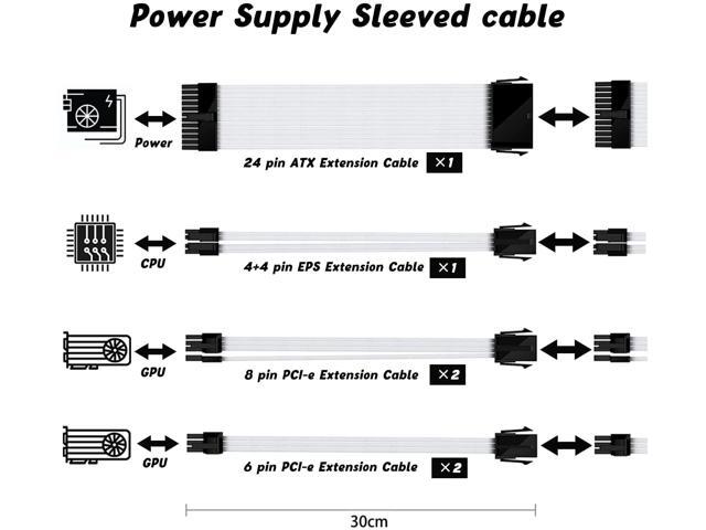 - ?[PSU Extension Sleeved Cables]:1x24 Pin ATX Extension Cable, 1x(4+4)Pin EPS Cable,2x8-Pin PCI-e Cable,2x6 Pin PCI-e Cable