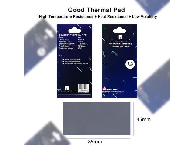 - ??EXCELLENT THERMAL CONDUCTIVITY:Upgraded thermal silica gel material with 12.8 W/mK thermal conductivity, Density (G/cc): 3.1±0.2 Hardness (Sc): 30~55; Breakdowm voltage: 9.8KV; Conductivity: None,our thermal pad greatly improve the heat transfer between the electronic elements and effectively cool the temperature down in seconds.