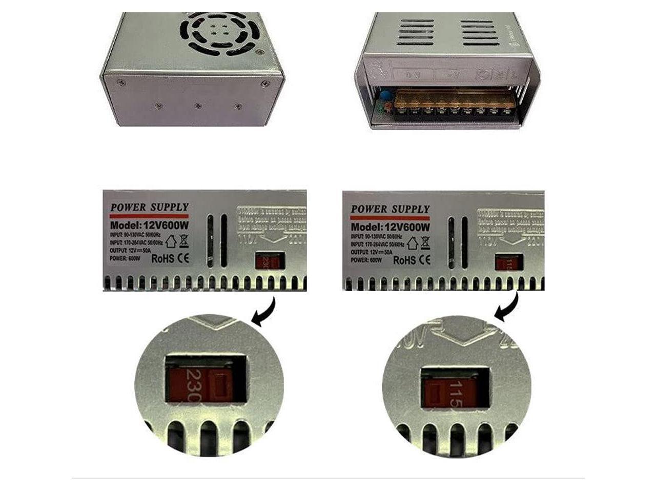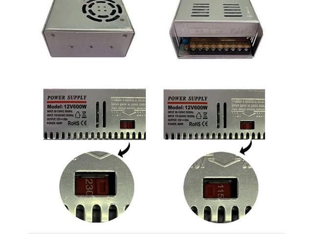 - BIG POWER DC 12V 50A POWER SUPPLY: Input: AC 110~264 V Switchable; Output: DC +12V (Adjustable±5%50A Maximum Power600Watts;