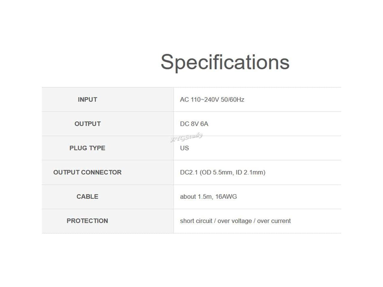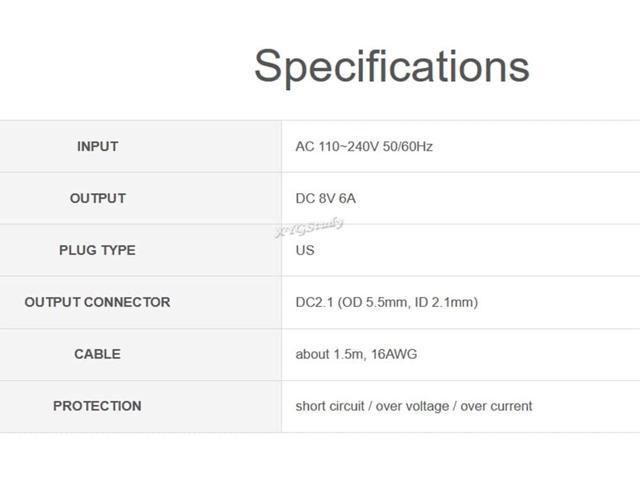 - Output DC 8V 6A, Plug type US
