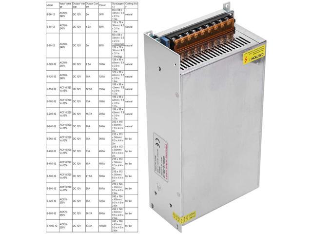 Switch Power Supply, Multipurpose LED Durable Power Supply Adapter, Professional for Industrial Automation 3D Printer LED Display CCTV(S-720-12 (12V/60A/720W) AC170-250V, pink)