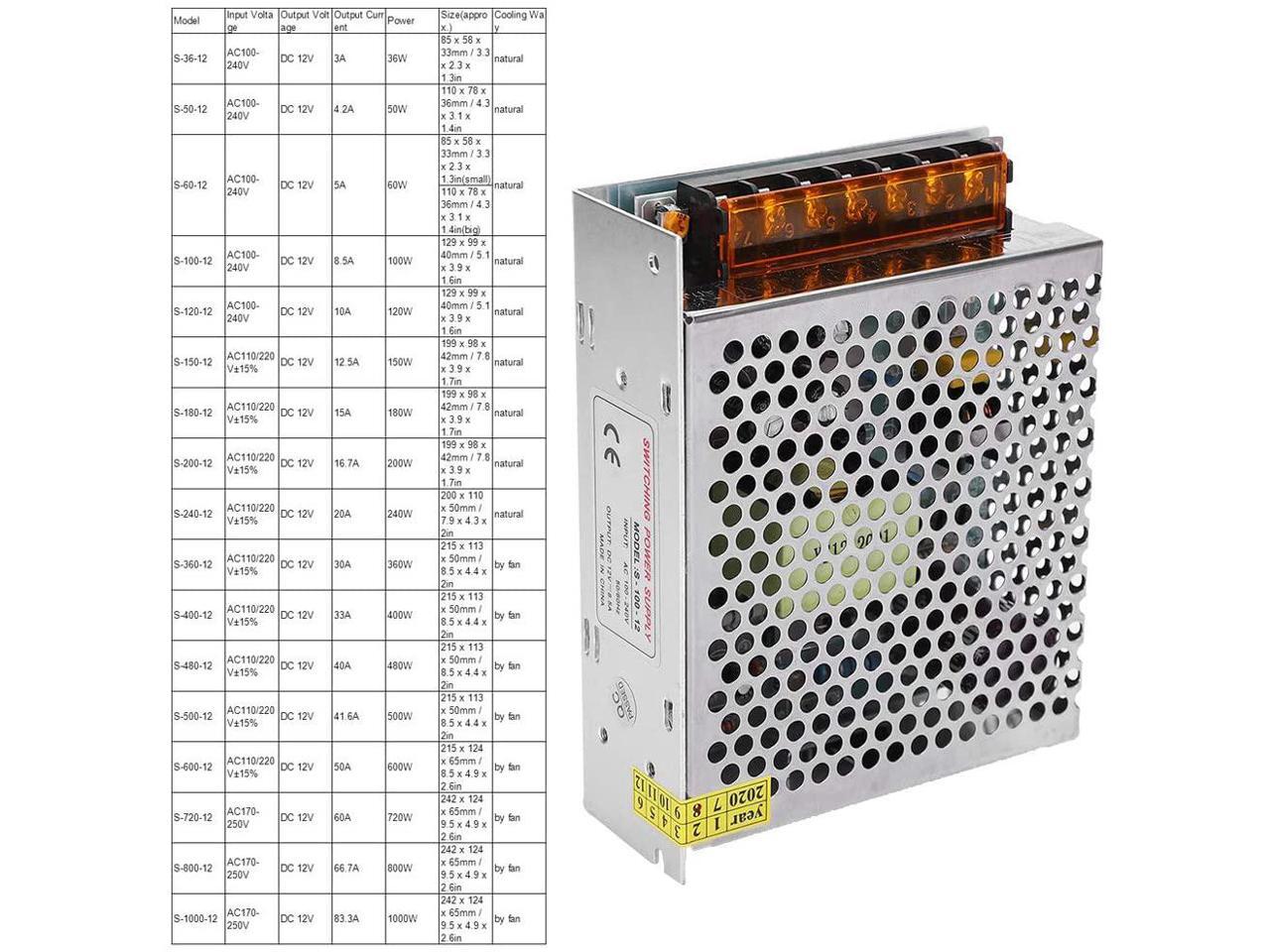 Switch Power Supply, Multipurpose LED Durable Power Supply Adapter, Professional for Industrial Automation 3D Printer LED Display CCTV(S-100-12 (12V/8.5A/100W) AC100-240V, Transl)