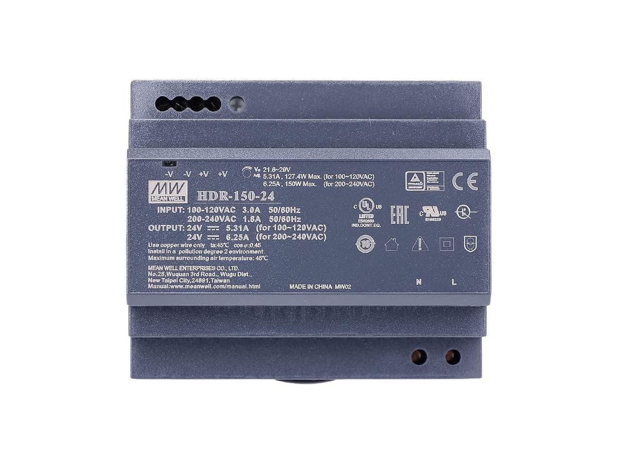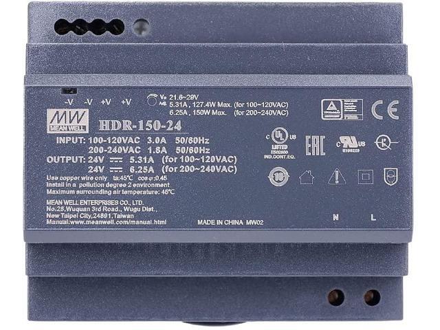 MW HDR-150W-12/15/24/48VDC Mean Well 150W Step Rail Type New Switching Power Supply (HDR-150-24)