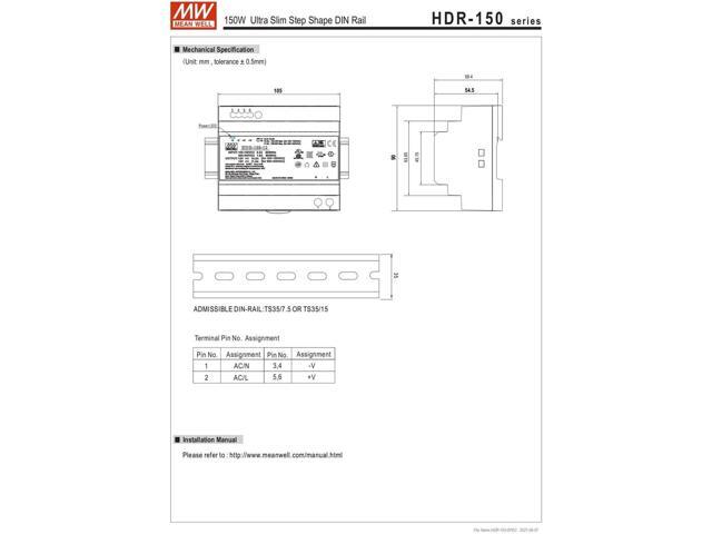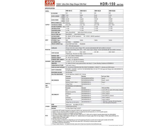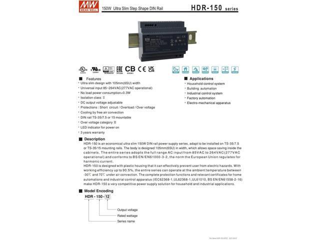 - 100% original HDR-150W|(12V/10.2A).(15V/8.55A).(24V/5.31A).(48V/2.72A) For Household/Industrial/Building automation control, Electro-mechanical apparatus.
