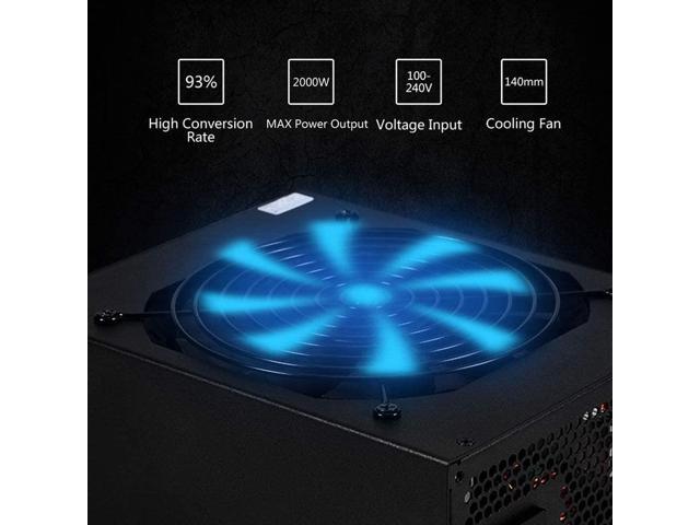 Nataliey 1800W Modular Power Supply, GPU Mining Rig, Mining Machine Power, Eth Miner, Active Pfc, for 8 GPU ETH Rig Ethereum Miner, with 14CM Super Powerful Double Ball Fan (Style B)