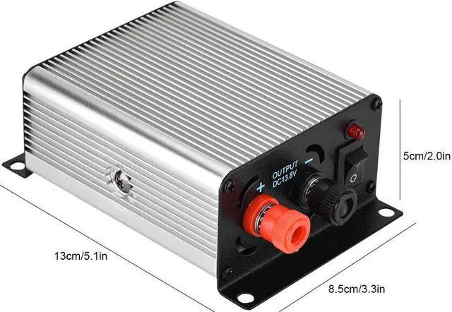 Tomantery Mini Power Supply, DC13.8V±0.2V Output Silver High Efficiency Switch Mode Power Supply for Two Way Radio
