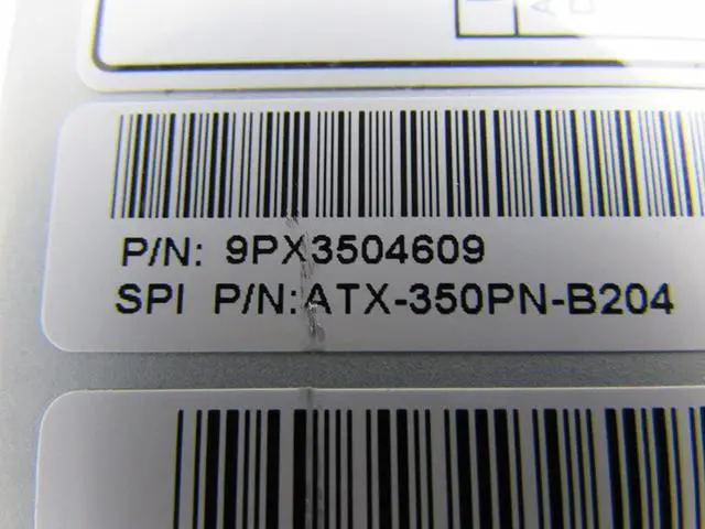 Specifications • Brand: SPI Sparkle • Model: ATX-350PN-B204 • Type: ATX 12V 2.0 • Maximum Power: 350W • Fans: 1 x 120mm Fan Connectors • 1 x Main connector (20+4 pin) • 1 x 12V (P4) • 6 x peripheral • 2 x SATA • 1 x Floppy