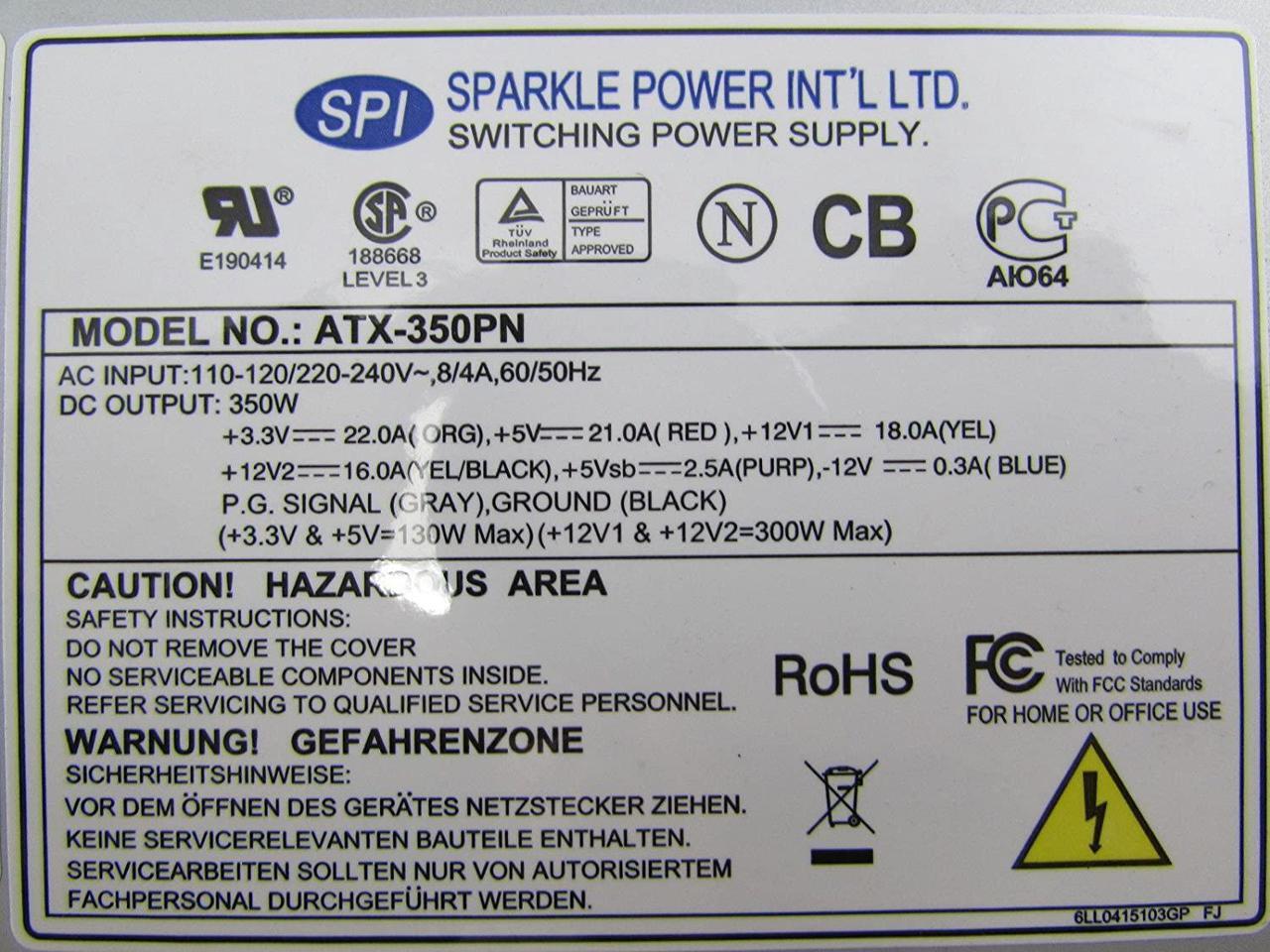 SPI Sparkle ATX-350PN 350W 350 Watts Switching ATX Desktop Power Supply PSU
