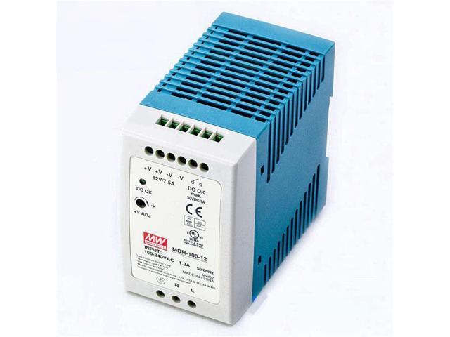MW Mean Well Plastic Case MDR-100W-12/24/48V Ultra Slim Class I Single Output Industrial DIN Rail AC-DC Power Supply (MDR-100-12)