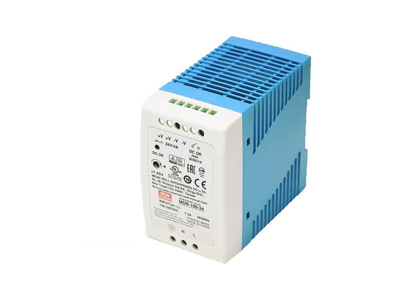 MW Mean Well Plastic Case MDR-100W-12/24/48V Ultra Slim Class I Single Output Industrial DIN Rail AC-DC Power Supply (MDR-100-24)