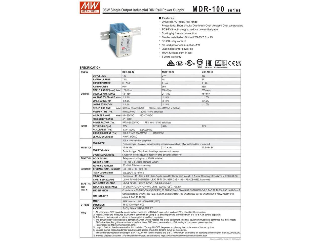 - 100% original MDR-100W|(12V 7.5A).(24V 4A).(48V 2A)For Industrial PLC sensor
