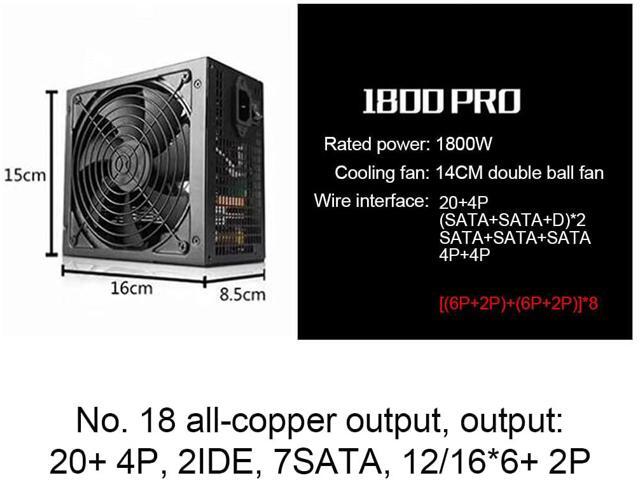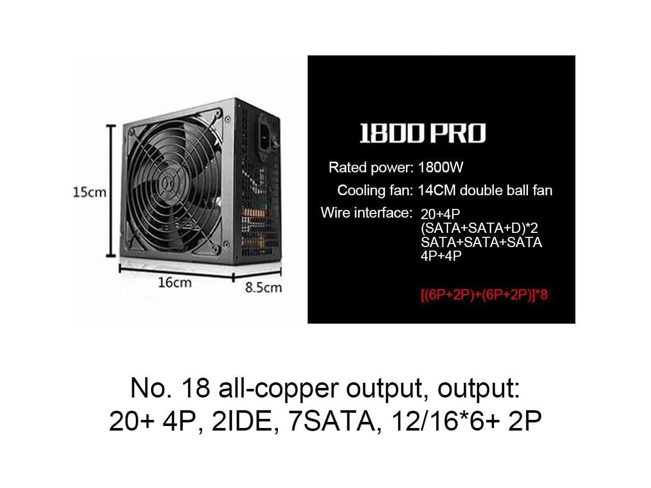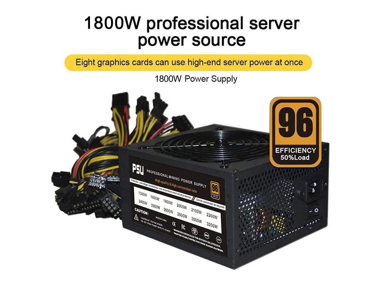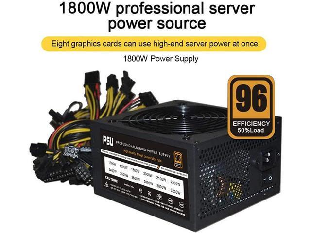 1800W Rated Miner Power Supply 96% High Efficiency AC 180-260V ATX Mining Power Source Support 8 CPU Card Max Up to 2000W