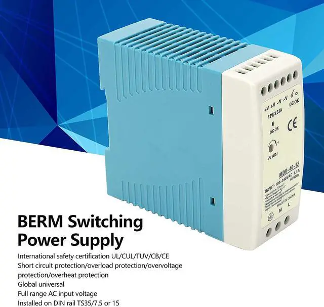 Berm Switching Power Supply,Berm Switching Power Supply 40W Single Output Ultra?Thin Rail Input 100?240VAC MDR?40?12