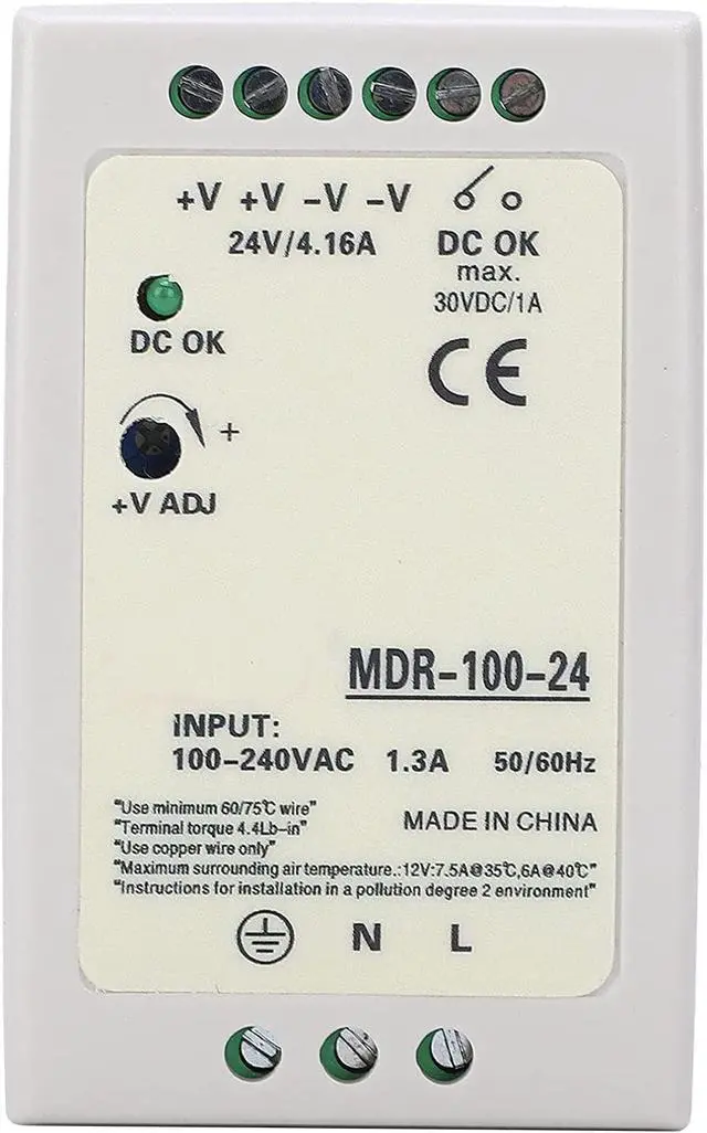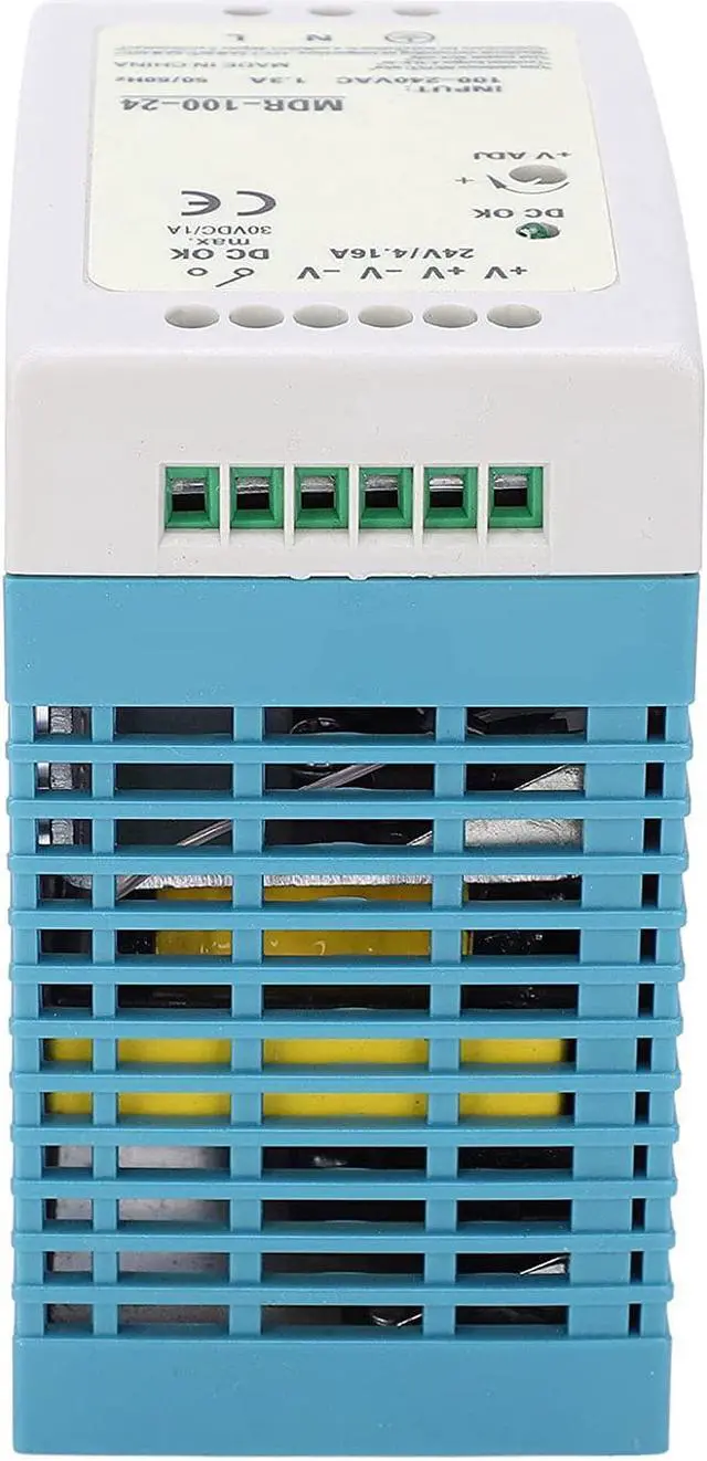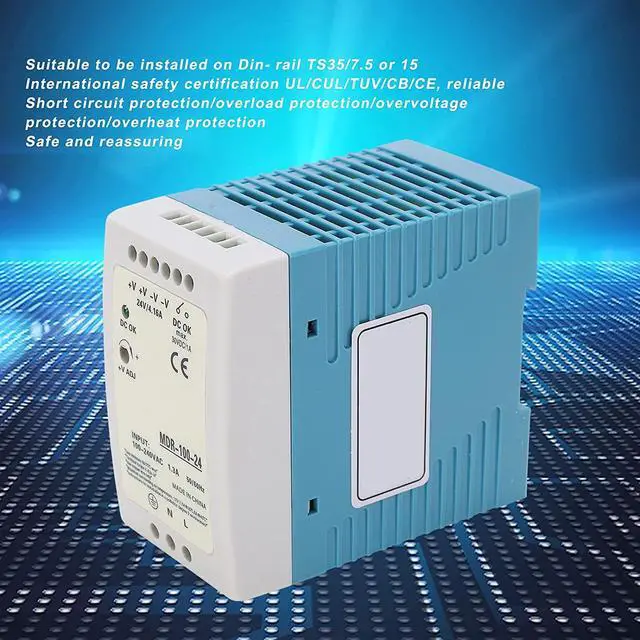 The MDR model is a DIN rail mounting power supply, which is quick and labor-saving to install. It is suitable for installation on DIN rail TS35 / 7.5 or 15. It is a low no-load standby loss model, with built-in active power factor correction function, DC OK signal output, convenient for external working condition display, 100 watt model also has an overheating protection function.