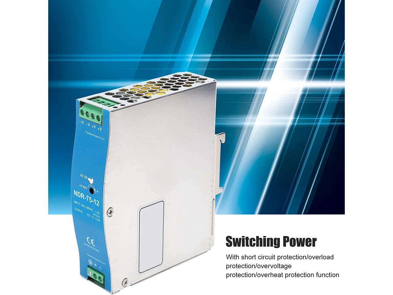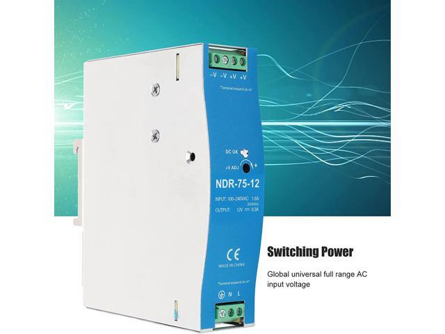 Din Rail Switching Power,Switching Power Supply for Industrial PLC Electric Cabinet Drive 100?240VAC NDR?75?12