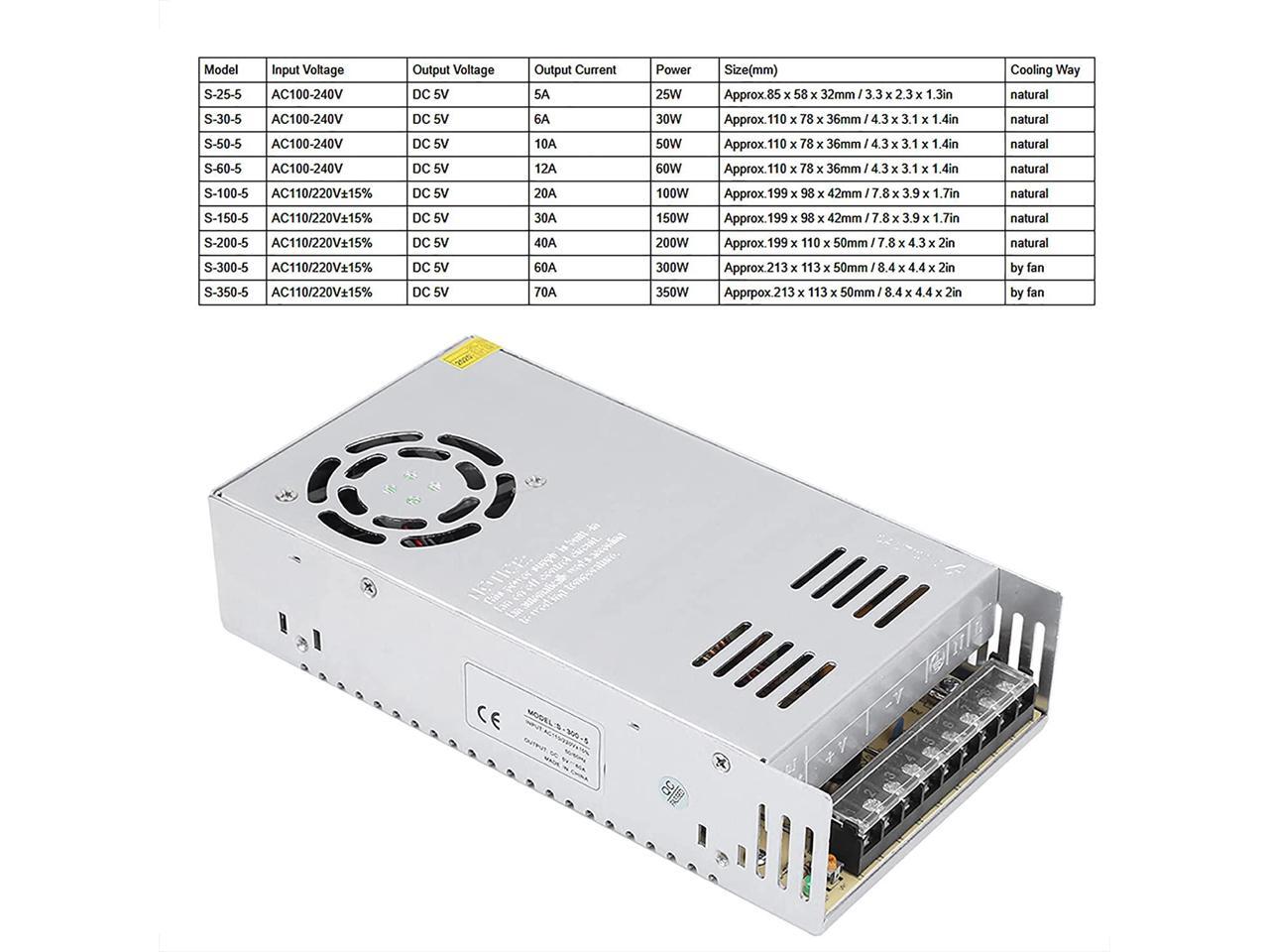 Excellent Power Switching High Insulation Strength Switching Supply Switching Power Supply Electronic Components for Industrial Automation(S-300-5 (5V/60A/300W) AC110/220V±15%, Pink)