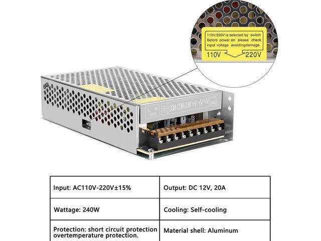 - TRANSFORM AC CURRENT INTO DC:This power supply can transform AC current into DC12V 20A.