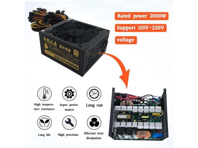 Modular Mining Power Supply 2000W 110-240V, Active PFC Power Supply Mining PC Power for 8 GPU Ethereum Miner with Auto-Thermally Controlled Fan Supply