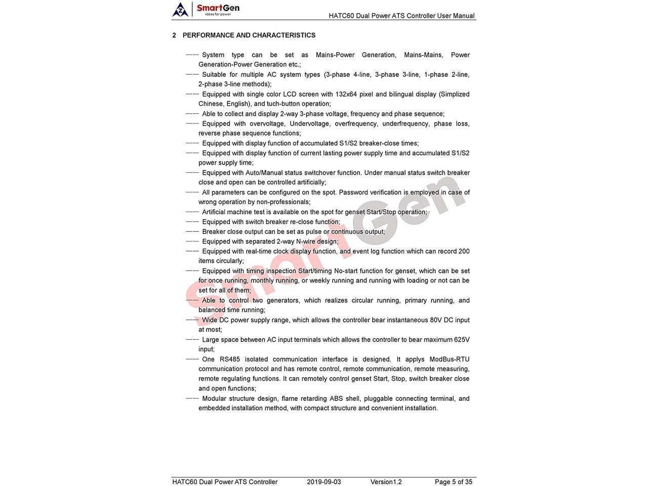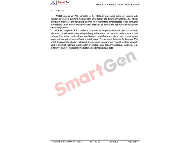 SmartGen HATC60 ATS controller, AC/DC power supply, designed for Socomec ATS