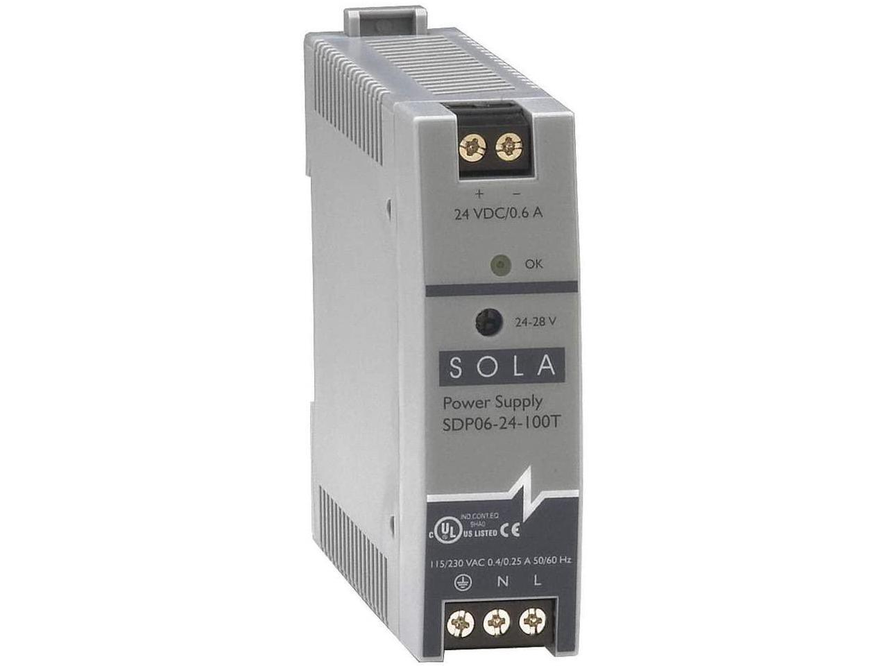 SOLA HD SDP0624100T 24VDC, Low Power, Power Supply, 47-63HZ, DC Power Supply, 0.6A, Out .6AMP, 24-28VDC, in 115/230V
