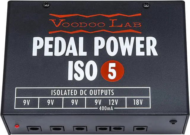 Pedal Power ISO 5 is an isolated power supply for powering guitar pedal effects and accessories. It's the ultimate compact solution for smaller pedalboards, rack shelves, or even as an additional power supply for larger boards. With five isolated, filtered and regulated output sections, ISO 5 keeps even the most sensitive vintage and boutique analog pedals dead quiet. Pedal Power ISO 5 includes a high-current output which will properly power modern digital power-hungry effects like those from Eventide, Line 6, and TC Electronic. There's also a dedicated 18V output for those pedals which need the higher voltage for extra headroom. Designed to meet the needs of professional users, Pedal Power ISO 5 will provide clean, consistent power, even with the poor AC line conditions often found on stage. Completely isolated output sections eliminate ground loops and unwanted interactions between effects, resulting in lower noise and noticeably improved tone.