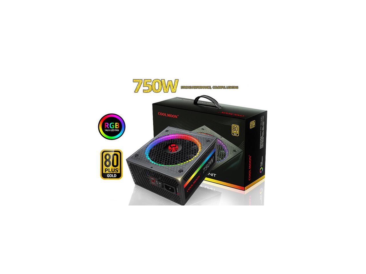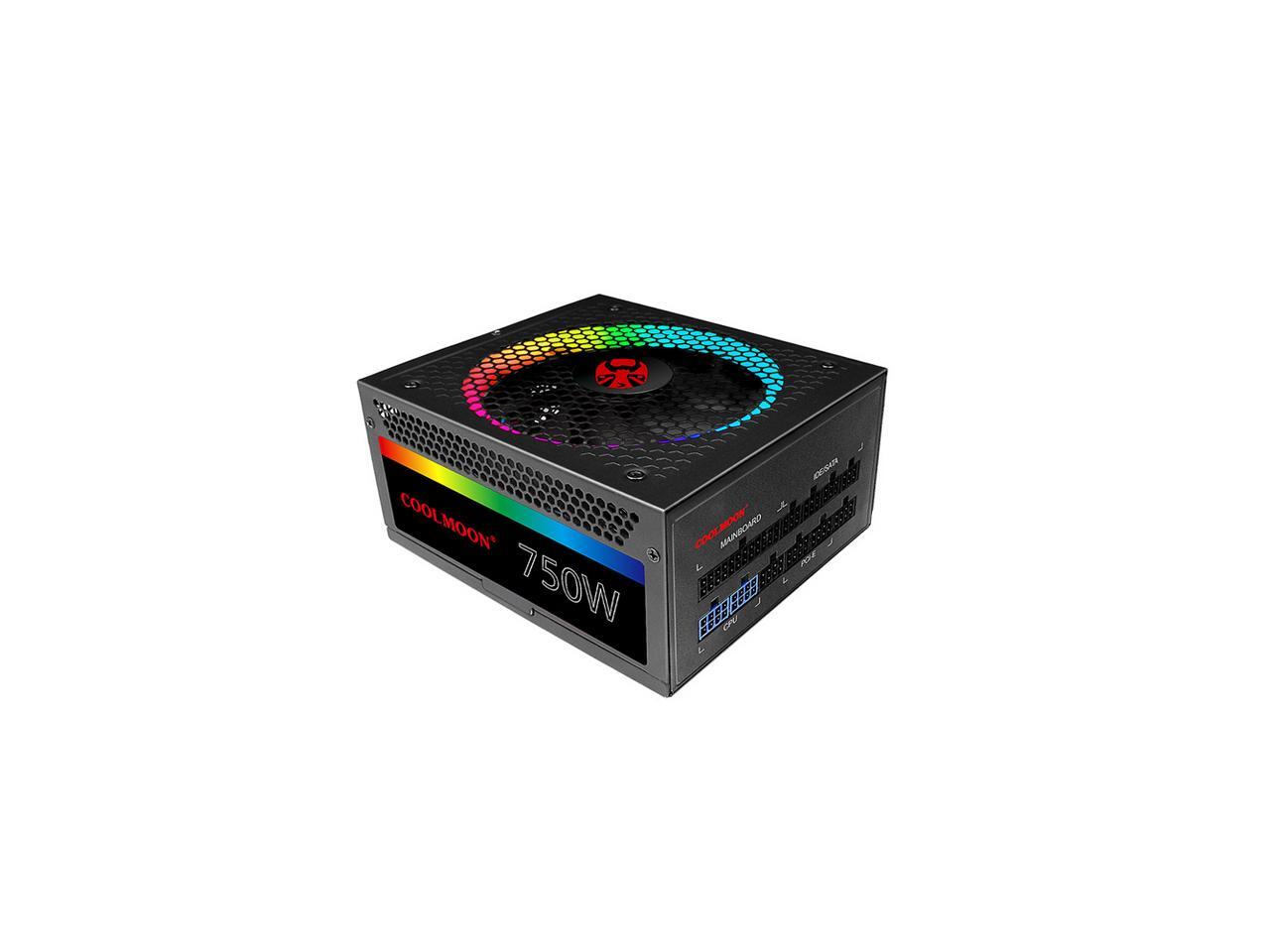 COOLMOON ATX Power Supply 750W Fully Modular 80+ Gold Certified with Addressable RGB Light - Vairous Color Mode, RGB-750W