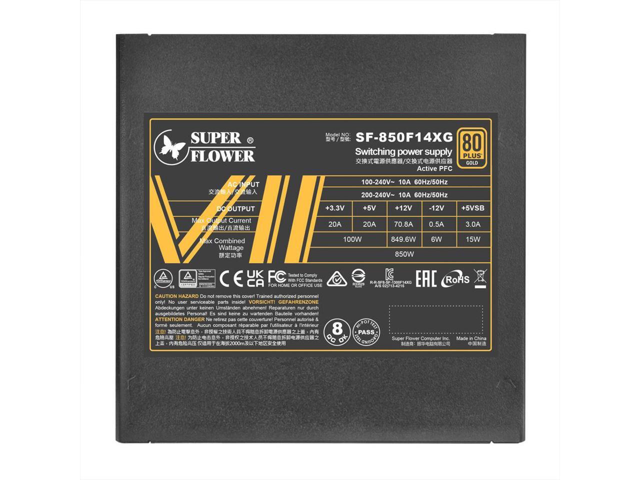 Super Flower Leadex VII XG 850W 80+ Gold, Cybenetics Platinum, Full Modular, ATX 3.1 & PCIe 5.1, W/12VHPWR Cable (2x8pin - 16pin native cables) , Power Supply, FDB Fan, SF-850F14XG, Black version