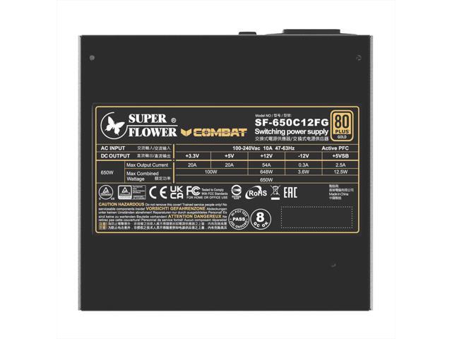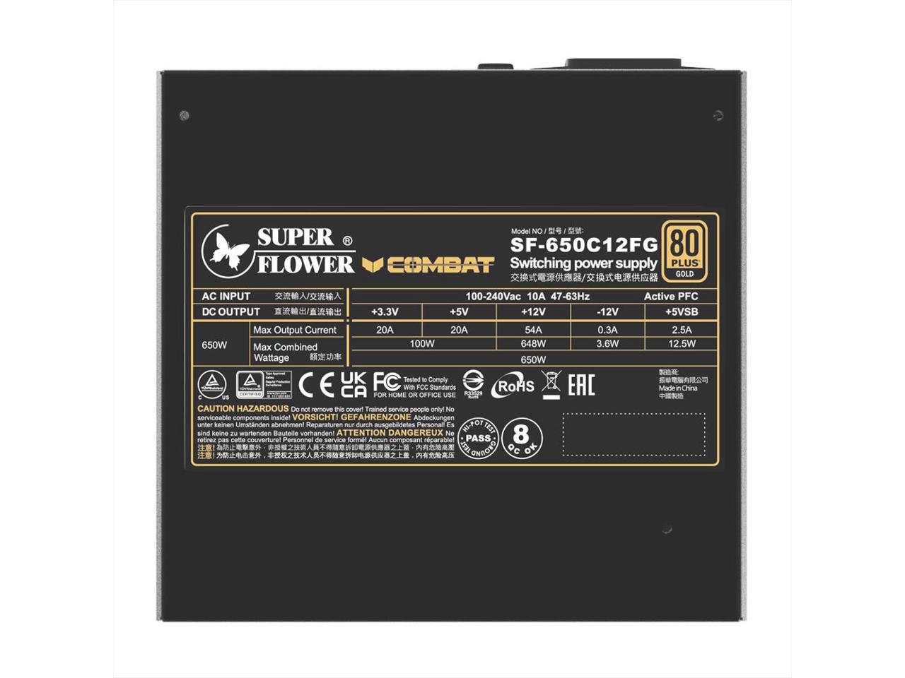 Super Flower Combat FG 650W 80+ Gold, Full Modular, ATX 3.1 / PCIe 5.0, W/12V-2x6 Cable (2x8pin - 16pin native cables) , Power Supply, FDB Fan, SF-650C12FG, Black version