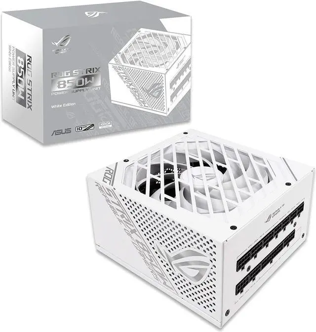 ROG Strix 850W White Edition PSU, Power Supply (ROG heatsinks, Axial-tech Fan Design, Dual Ball Fan Bearings, 0dB Technology, 80 Plus Gold Certification, Fully Modular Cables, 10-Year Warranty)