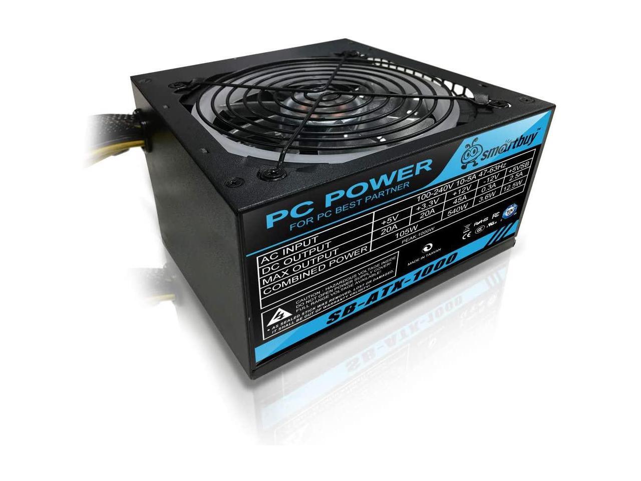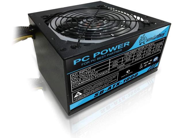 Smartbuy 1000W LED Fan Silent PC ATX Power Supply PSU SATA 12V PCI-E w/Auto Fan Speed Control w/Multi-Function Protection (Blue LED)