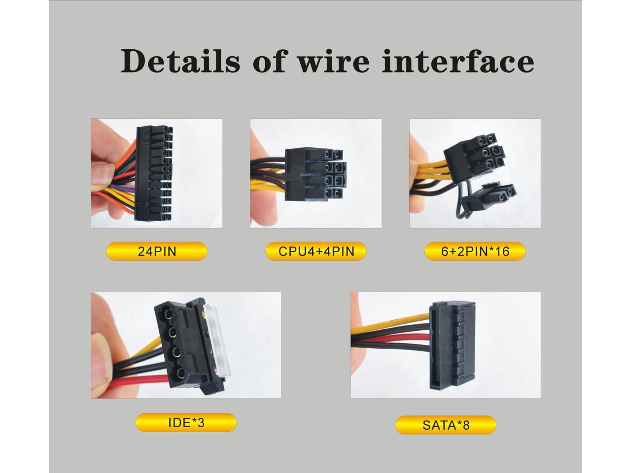 No. 18 copper output cable, rich output interface: 20+4p, 3IDE, 8SATA, 16*6+2p