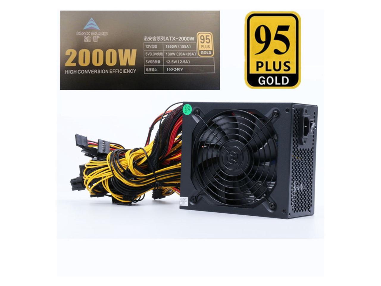 2000W Modular Power Supply For 6 GPU Rig Coin Mining Miner 95 Gold 160V-240V