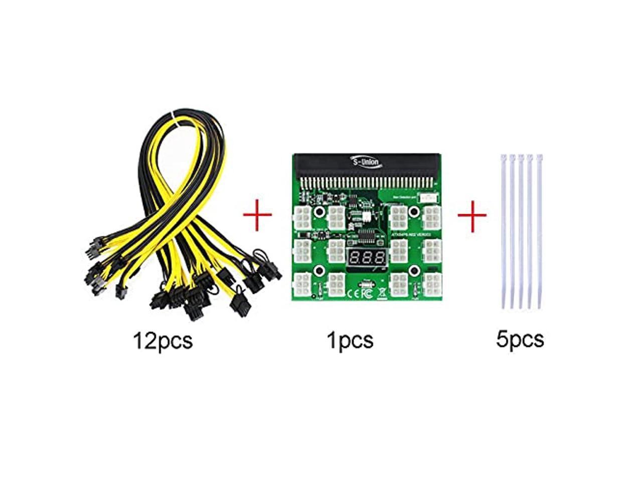 S-Union Ethereum ETH ZEC Mining Power Supply 12V GPU/PSU Breakout Board + 12pcs 16AWG PCI-E 6Pin to 6+2Pin Cables 27.5Inch Length(70CM, with 5 Nylon Cable Ties) (4335247759)