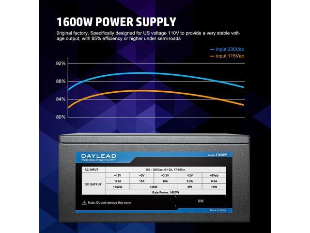 - 1600W power supply: original factory, Specifically designed for US voltage 110V to provides very stable voltage output, with 85% efficiency or higher under semi-loads(work with ranges 100-240V).