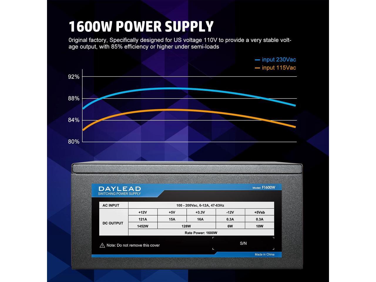 Daylead 1600W Power Supply Full Modular 110V High Power PSU for Bitcoin Miner Ethereum Rig and Support Double CPU Mining Server