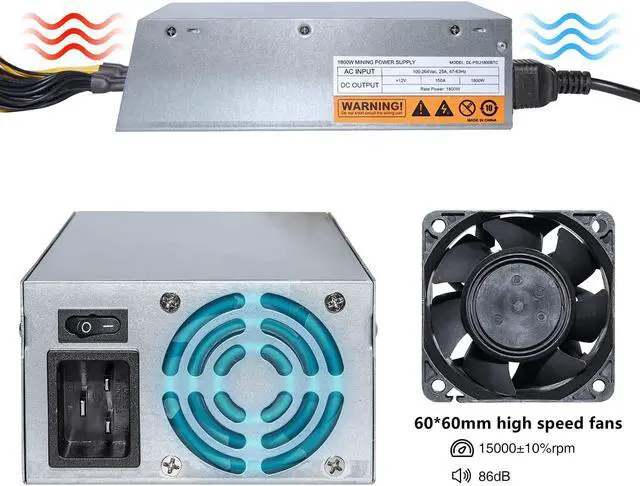 1800W Mining Power Supply 1800w Gold Mining Power Supply Bitcoin Ethereum Miner 110V (100~240v) AC to DC Full 150A PSU GPU BTC